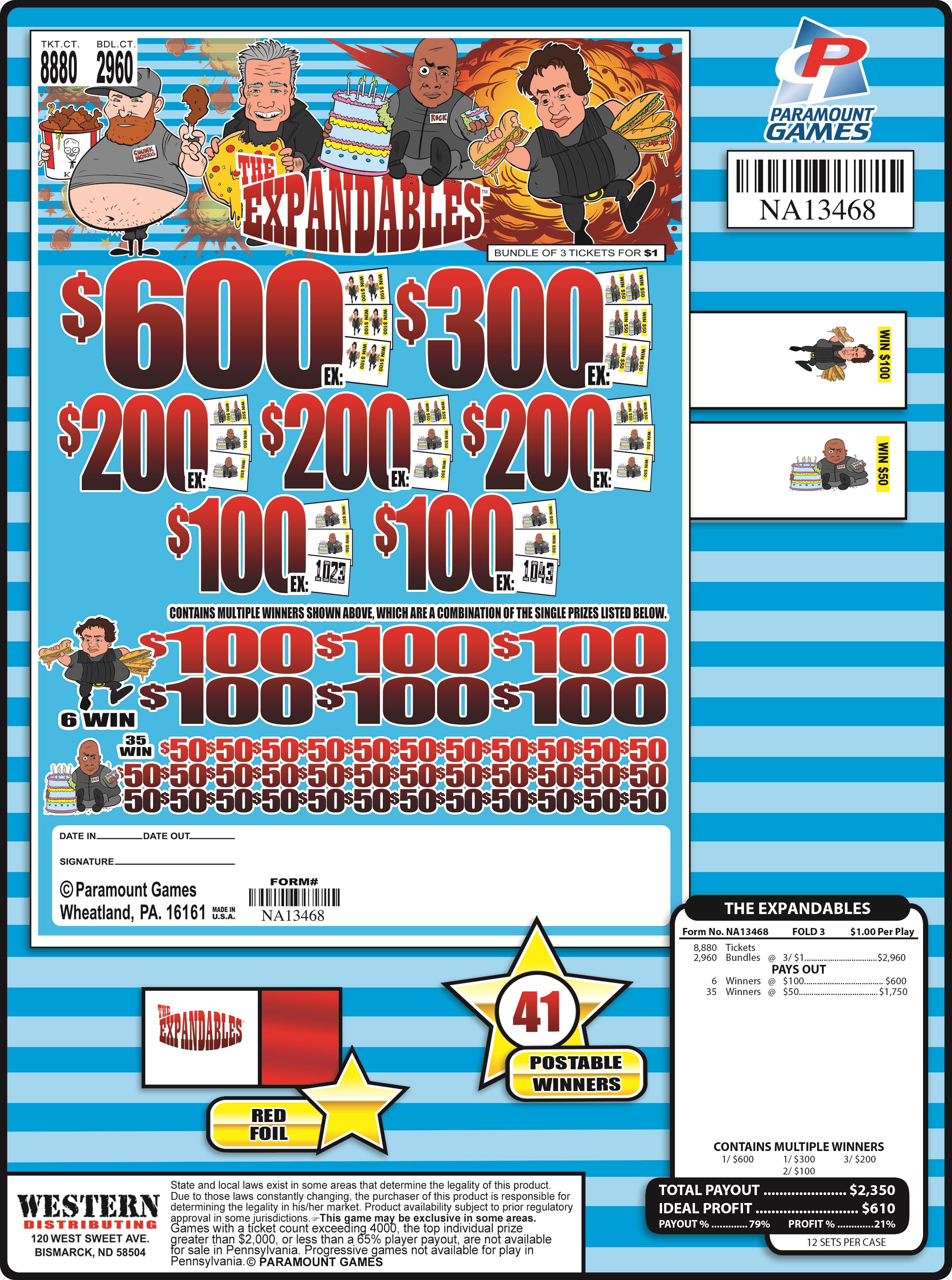 43 Winners @ $50………... $2,150