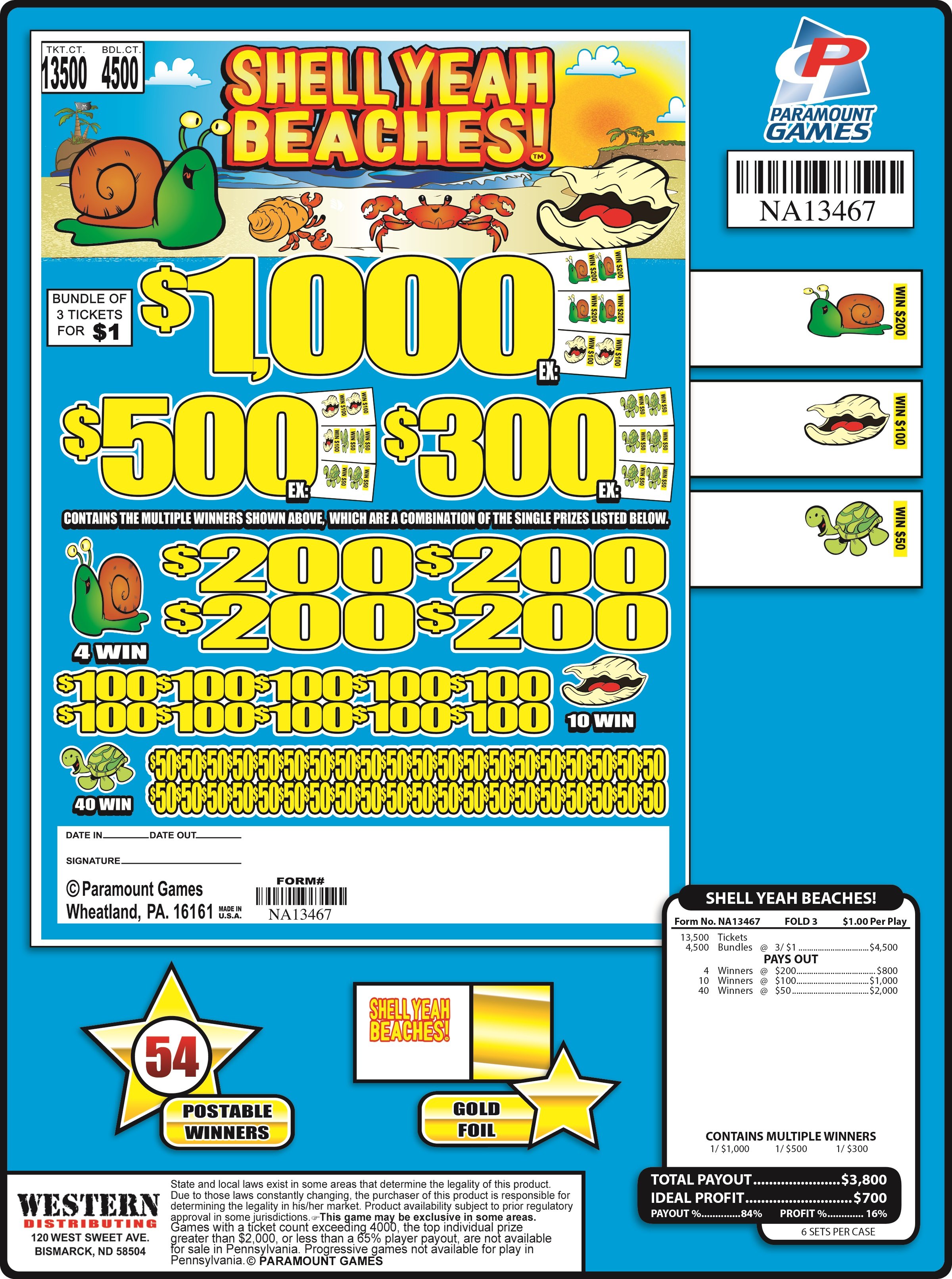 12 Winners @ $100…….. $1,200