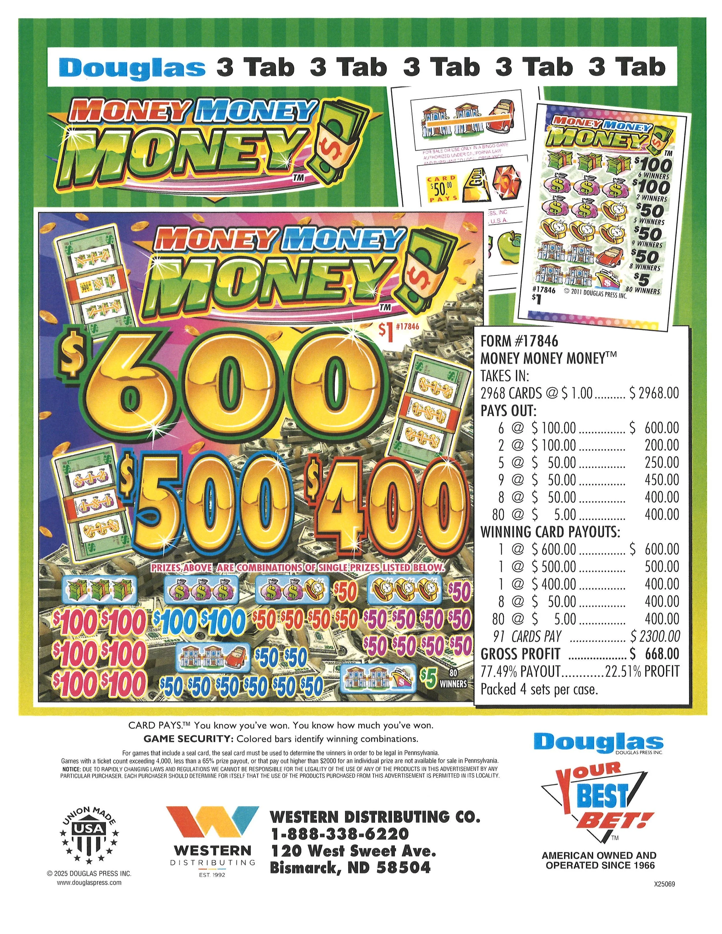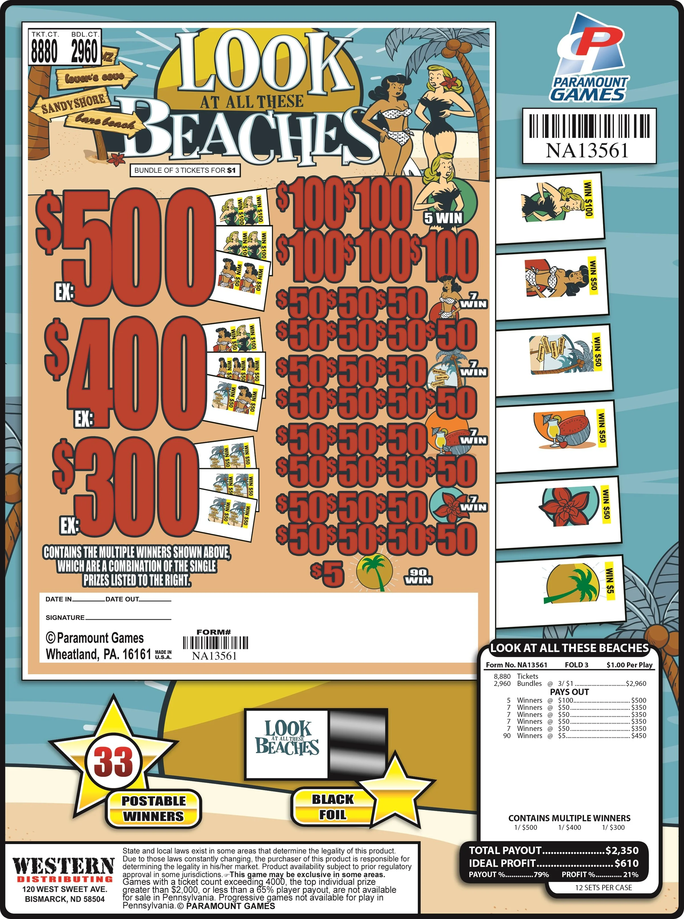 5 Winners @ $100………. $500